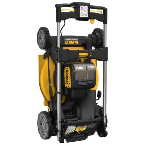 Part Description: 60V MAX* Cordless Brushless RWD, Self Propelled Mower Kit is built from the battery up, for optimal electric cutting performance. The new 60V MAX* Brushless Rear Wheel Drive, Self-Propelled Mower features the patented High Efficiency Cutting System which utilizes the all-new steel cutting deck design, dual blade system, and autosense motor to deliver up to 75 minutes of runtime. The mower folds with one touch for easy storage and comes with 3-in-1 mulching, bagging and rear discharge capabilities. Kit includes: (2) DCB612 Batteries, (2) DCB1104 Chargers, (1) Grass Bag, (1) Rear Side Discharge Chute, (1) Mulch Plug,