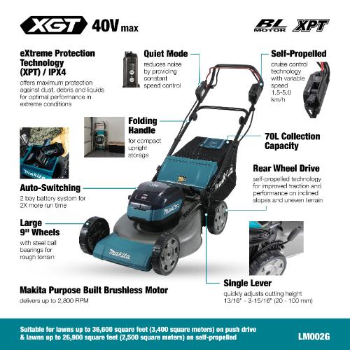 - Suitable For Lawns Up To 3,400 square meters (Approx. 36,600 square feet) on Push Drive & Lawns Up To 2,500 square meters (Approx. 26,900 square feet) on Self-Propelled