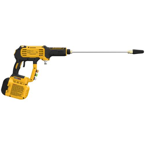 Part Description: For portable cleaning on the jobsite or at home with 18X the cleaning power of a garden hose, the DEWALT 60V MAX* Power Cleaner is the ideal choice. This versatile tool can draw from any fresh water source with an included suction hose for when a garden hose is not easily accessible. The power cleaner can also be hooked up to your garden hose at home or on the jobsite with the convenient quick connect adaptor. Conveniently clean your tools and equipment as well as decks, boats, outdoor furniture, and vehicles with this all-in-one device. Find the right stream for the job with 4 nozzles included that can all be stored on the unit, plus a foam cannon to efficiently tackle a variety of cleaning tasks. This kit includes: VARIABLE SPEED CONTROL: 2 speed selector for power or runtime, (1) FLEXVOLT DCB609 9.0Ah Battery, Charger, (1) Long wand with quick connect, (4) Nozzles (Turbo, 15°, 25°, 40°), (1) Foam cannon