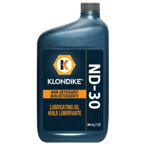 Part Description: 946ml KLONDIKE Non-Detergent 30 Lubricating Oil is recommended for use in air compressors and other industrial applications where non-detergent oil is specified. May be used in old gasoline engines built before 1963. Non-Detergent 30 Lubricating Oil is formulated using 100% pure, virgin base oil. Non-detergent chemistry ensures there is no material in the formula to create deposits on metal surfaces, ensuring clean operation.