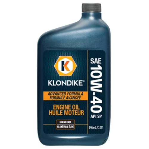 Part Description: 946ml KLONDIKE SAE 10W-40 API SP Engine Oil is an API SP certified premium quality multi-grade motor oil designed for maximum engine protection and exceptional fuel economy even under extreme driving conditions. Technologically advanced additive system reduces friction and wear at start-up, and protects your engine against performance-robbing sludge and varnish deposits. KLONDIKE SAE 10W-40 API SP Engine Oil uses a specialized formula for older, high mileage engines, which delivers outstanding antiwear performance and helps reduce oil consumption and leakage. Recommended for use in passenger cars, light trucks, sport utility vehicles, and other stationary or mobile engines. It meets or exceeds warranty requirements for all engines specifying SAE 10W-40 grade and API SP Service Category.