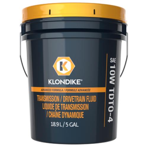 Part Description: 18.9Lt/5gal KLONDIKE SAE 10W TDTO-4 Transmission and Drivetrain Fluid is specially designed for the needs of heavy duty mobile and stationary equipment where Caterpillar TO-4 or Allison C-4 fluids are specified. Provides excellent operating and maintenance benefits across a broad temperature range for increased efficiency, performance, and component protection. Typical applications include power-shift and hydrostatic transmissions, torque converters, wet brake mechanisms, differentials, final drive gears, and hydraulic systems. Never use KLONDIKE TDTO-4 Transmission and Drivetrain Fluid as engine crankcase oil.